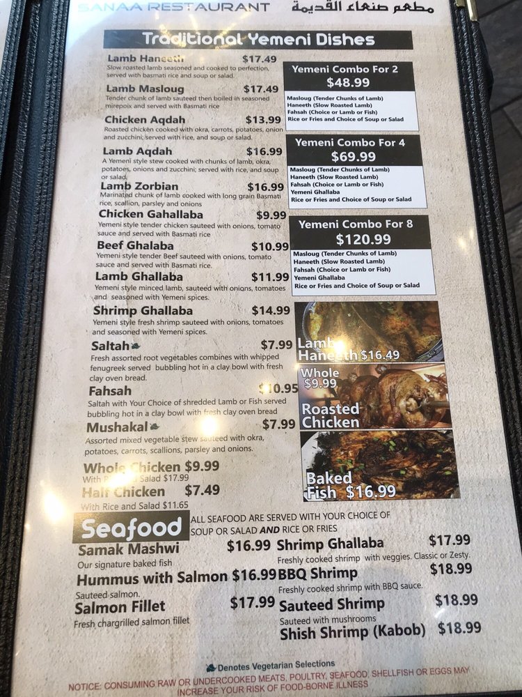 “ Take a trip to Sam City in East Dearborn for a classic Yemeni meal a most excellent experience. Sana'a's Old City One of the oldest continuously-inhabited cities in the world (others being Jericho, Damascus and Aleppo), Sana'a is believed to have been founded by Shem, the son of Noah. As a result, the city has the unlikely nickname of "Sam City". A absolutely explosion of flavor many Yemeni folks drive from around metro Detroit to enjoy a taste of home. I asked our superstar waitress Katie Rose to have chef make me special 20 buck Yemen Food platter OMG fantastic with half Yemeni Chicken, Tender Moist Lamb on a bed of the Famous Yemen Rice and hot sizzling bowl of Saltah Saltah (Arabic: ) is a Yemeni dish. It is widely eaten in northern parts of the country. It is mainly served for lunch. The base is a brown meat stew called maraq, a dollop of fenugreek froth, and sahawiq or sahowqa (a mixture of chillies, tomatoes, garlic, and herbs ground into a salsa). A couple fresh hot outta the oven, Malawah Bread is one of the many kinds of bread eaten in Yemen. What makes it unique is that it is layered and folded with butter or ghee inside which makes it very tasty. She had a special Yemeni Chicken topped salad. Katie brought a couple cups of deliciousness Yemeni Tea Free for everyone a custom of true Yemeni restaurant. Easy to find large parking lot in rear. A must visit for a unique cultural experience like no other. #yemeni #malawahbread #dearborncitygov #sanaayemen #letsguide #motorcitymunchers ”